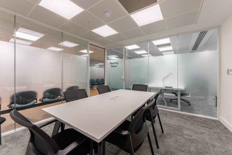 Additional works included the formation of a new kitchen/tea point and all floor and wall finishes. Mechanical works involved extending the existing VRF system with an additional unit and providing local controls to the individual rooms, a necessity for the private & confidential appointments held within. Electrical works included connections to a newly renewed distribution board reusing the existing lighting panel and integrating proximity sensors.